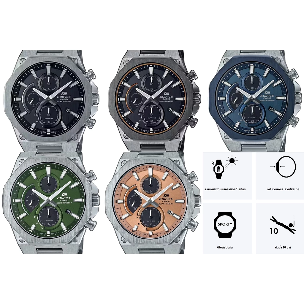 ซีรีส์ EDIFICE โดดเด่นด้วยดีไซน์สปอร์ตที่ดูพรีเมียม ตัวเรือนและสายใช้วัสดุเกรดสูง เน้นงานอนาล็อกหรืออนาล็อกผสมดิจิทัล ให้ภาพลักษณ์เท่ สุภาพ และเหมาะกับทั้งชีวิตประจำวันและงานธุรกิจ บางรุ่นมีการเชื่อมต่อสมาร์ทโฟนหรือฟังก์ชันพิเศษด้านการจับเวลา