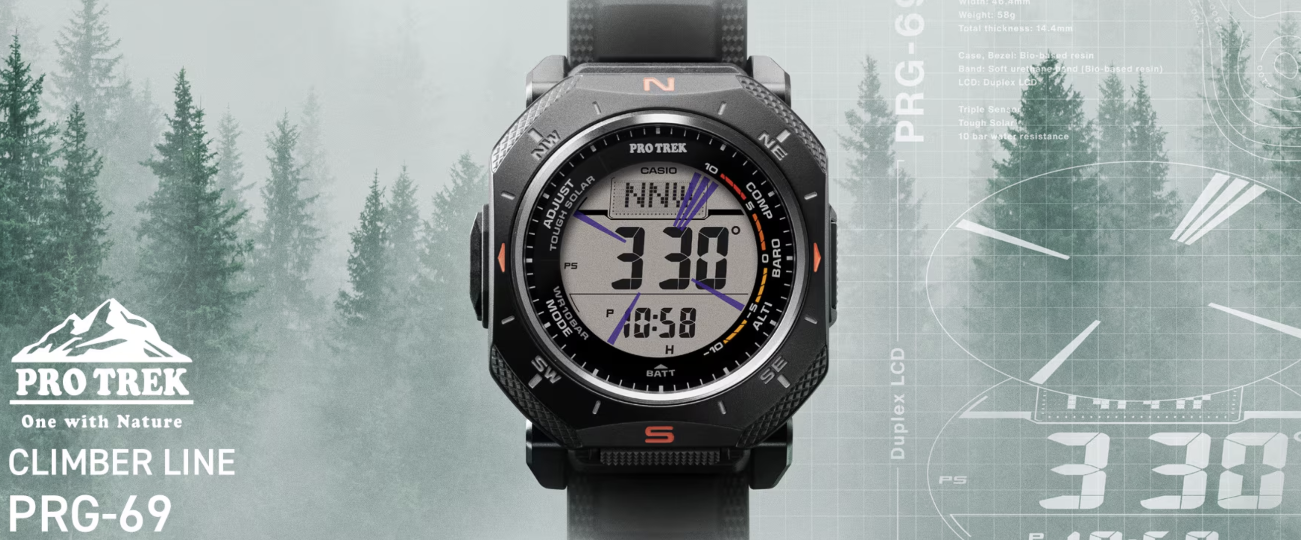PRO TREK เป็นกลุ่มนาฬิกาที่ออกแบบมาเพื่อสายแคมป์ สายปีนเขา และกิจกรรมกลางแจ้งจริงจัง จุดเด่นคือฟังก์ชันเฉพาะด้าน เช่น