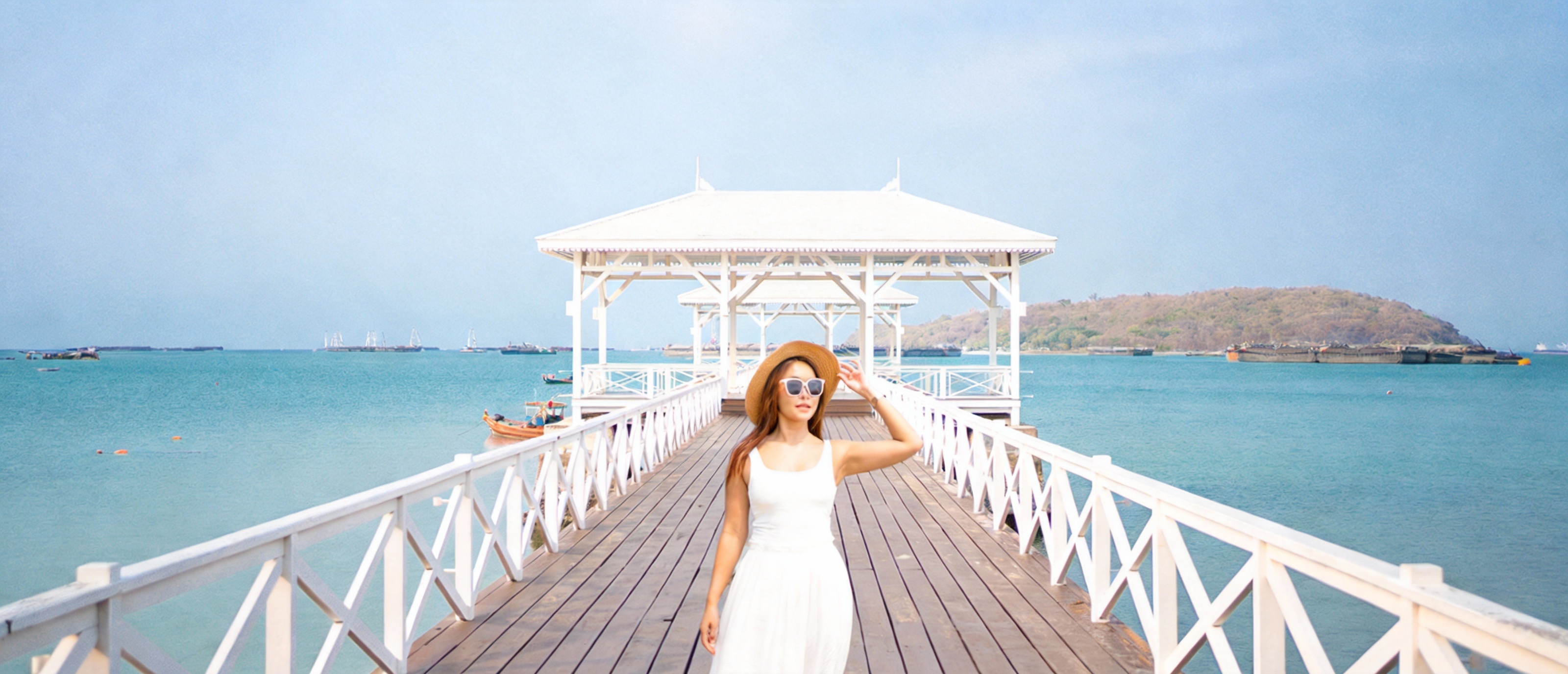 1. สะพานอัษฎางค์ – สะพานไม้สีขาวสุดโรแมนติกริมหาด ทะเลล้อมรอบ มุมถ่ายรูปยอดฮิตของเกาะสีชัง จะถ่ายเดี่ยว คู่ หรือรูปแฟมิลี่ก็ออกมาดูดีสุดๆ 🌊