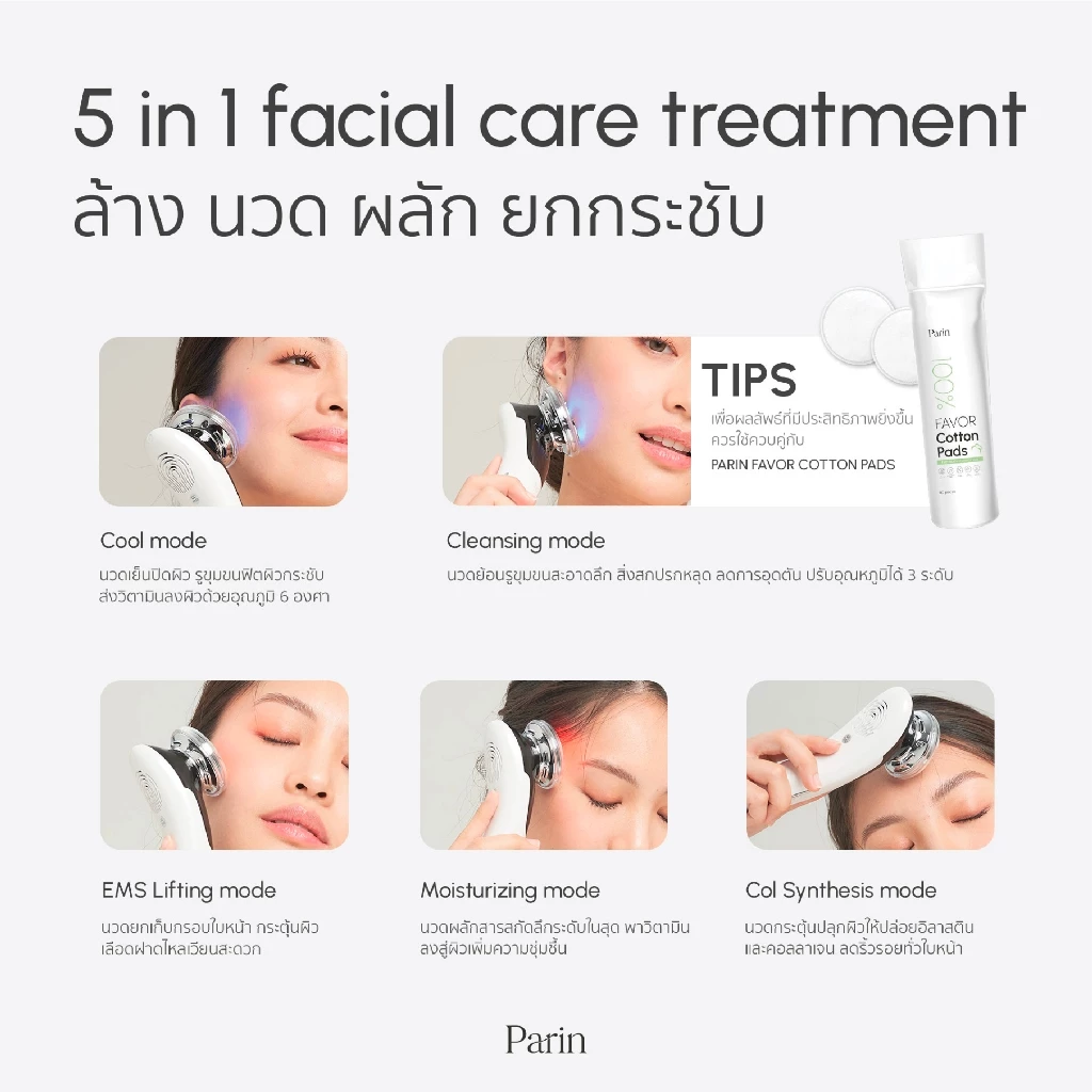 หากต้องการความครบจบในเครื่องเดียว ตัวเลือกอย่าง Parin เครื่องนวดหน้า Skin Glow Treatment ก็ถือว่าเหมาะสำหรับผู้เริ่มต้นหรือคนที่อยากได้อุปกรณ์ที่ใช้งานได้หลากหลาย