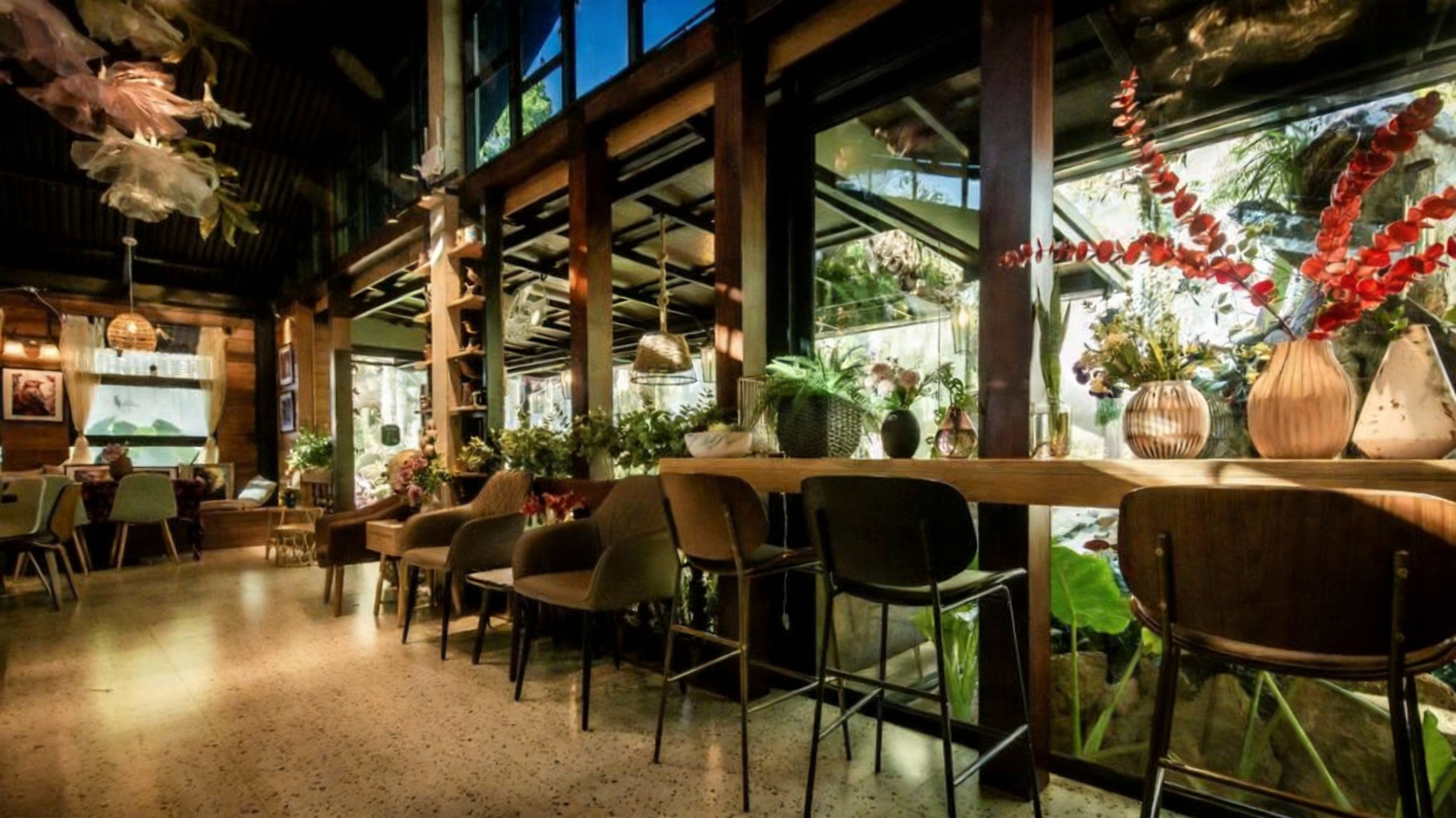 บรรยากาศร่มรื่น ฉ่ำไปด้วยธรรมชาติ เหมาะจะมานั่งจิบกาแฟ ปล่อยใจให้เบา สูดอากาศดี ๆ แล้วปล่อยให้หมอกและสวนทำหน้าที่บำบัดความเหนื่อยแทนคุณ