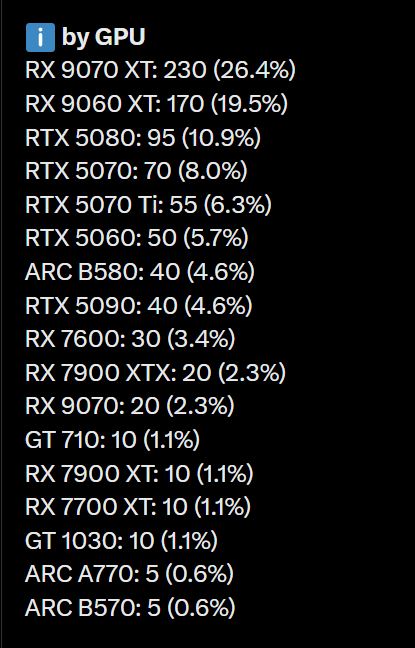 Radeon RX 9070 XT (อันดับ 1 ต่อเนื่องหลายเดือน)