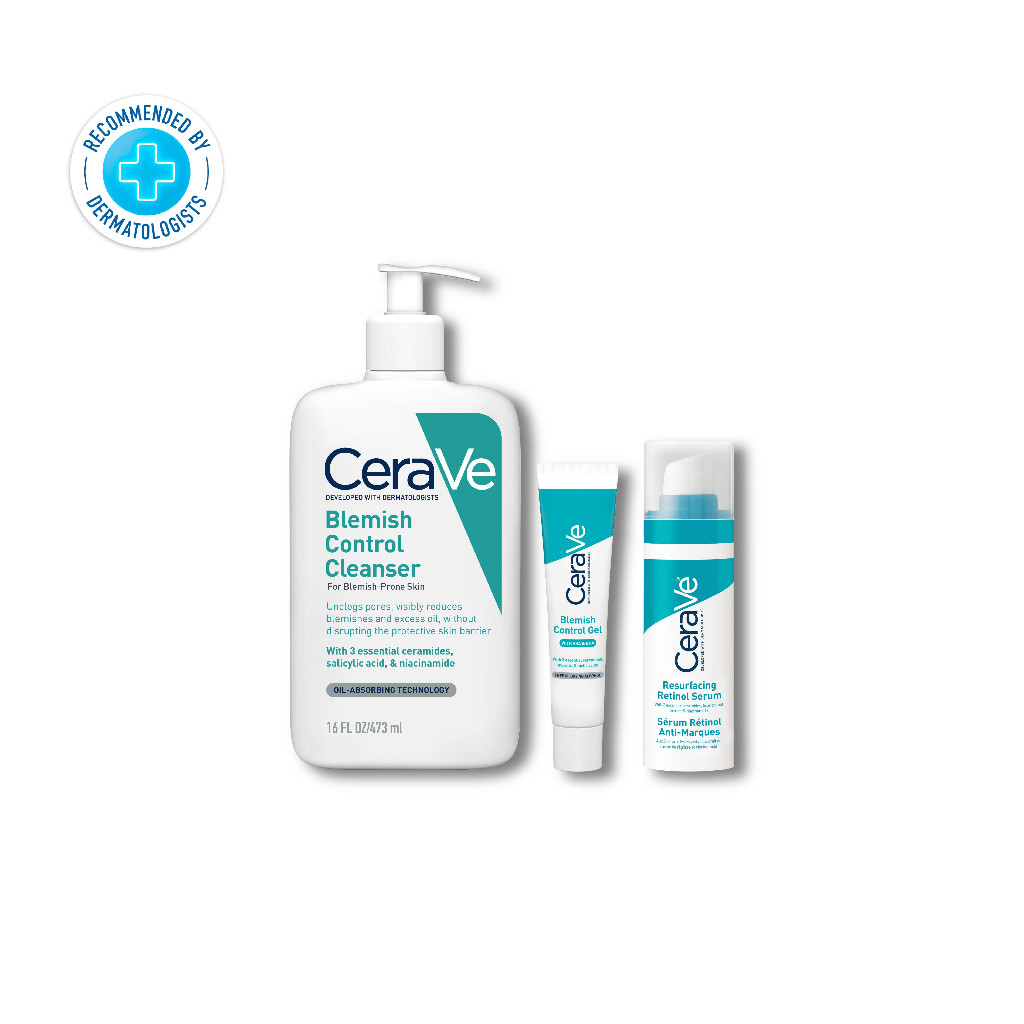 เซตสู้สิว Blemish Cleanser + Blemish Gel + Retinol Serum เป็นการดูแลผิวแบบครบวงจร ตั้งแต่การทำความสะอาด ลดสิว ไปจนถึงการลดรอยและฟื้นฟูผิว