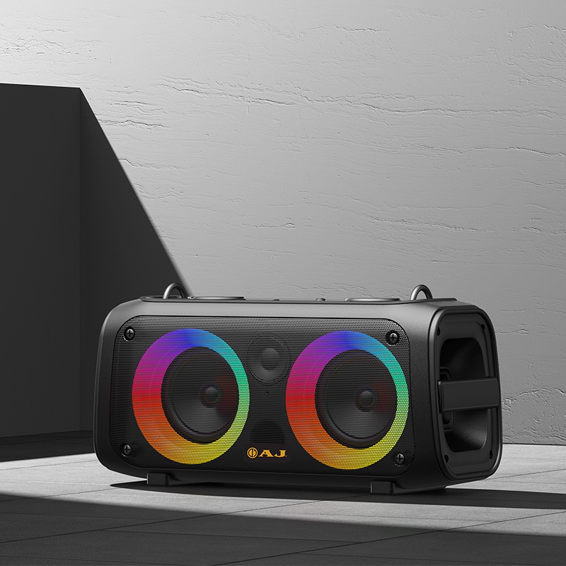 AJ BOM-87W เป็นลำโพงบลูทูธพกพากำลังขับ 60 วัตต์ มาพร้อมดอกลำโพงเบสขนาด 4 นิ้วจำนวน 2 ดอก เน้นเสียงเบสแน่นและความดังที่ครอบคลุมพื้นที่ได้ดี