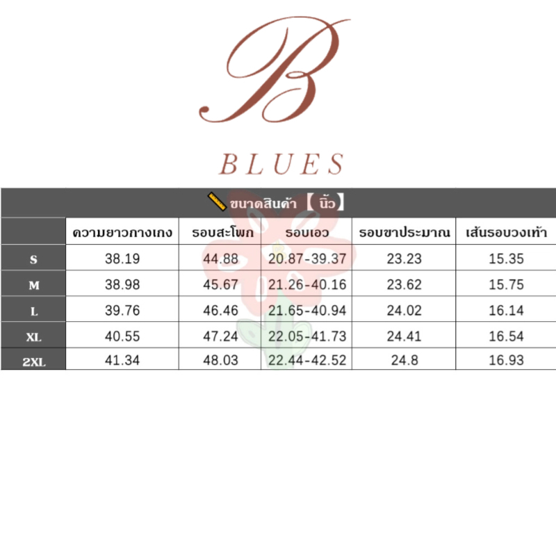 ตารางขนาด B BLUES กางเกงวอร์ม (นิ้ว)