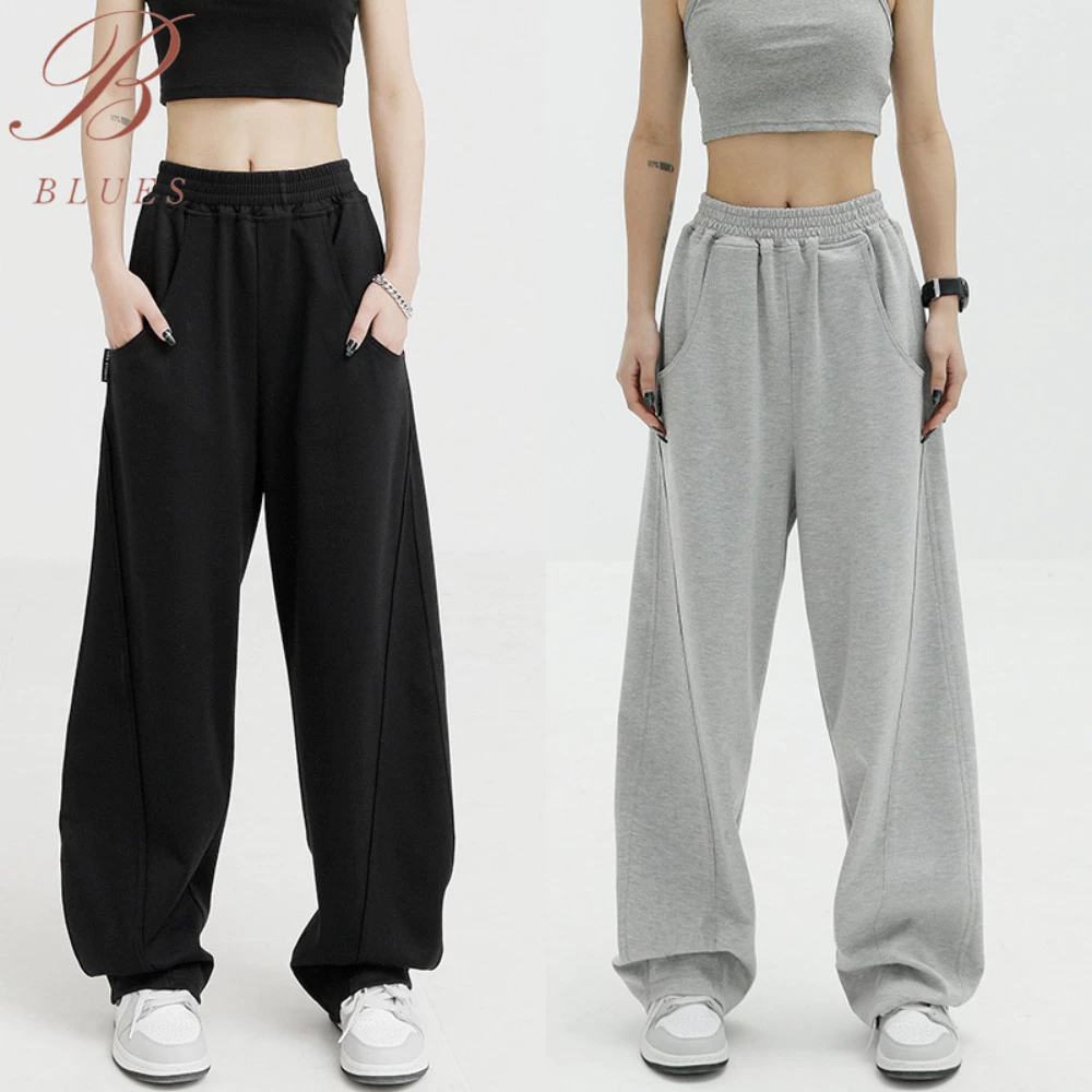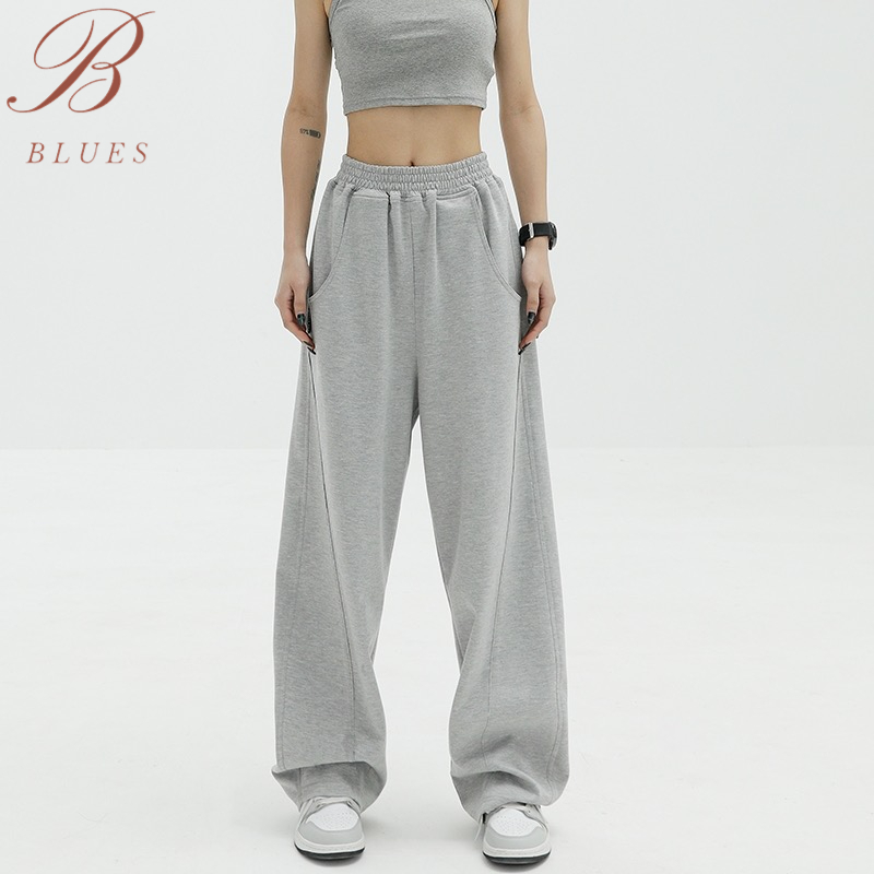 ต้องยกให้ B BLUES กางเกงวอร์มเอวสูง สีพื้น ทรงหลวม สไตล์เกาหลี