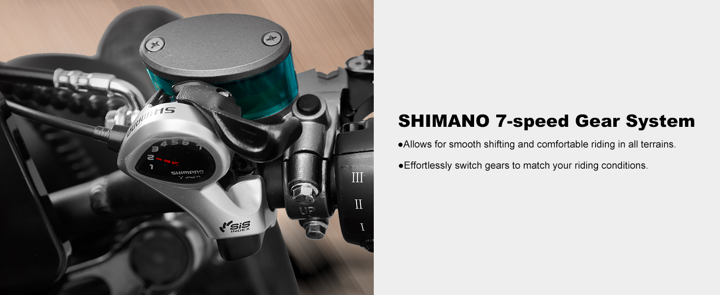 แม้จะเป็นรถไฟฟ้า แต่ก็ยังให้ความรู้สึกแบบจักรยานจริงจังด้วยเกียร์ Shamano 7 สปีด
