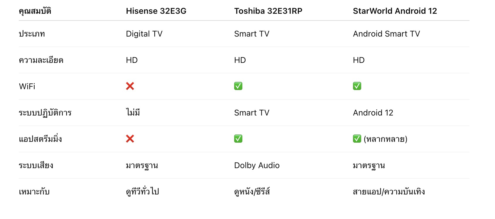 บทความนี้จะพาคุณไปทำความรู้จักและเปรียบเทียบทีวี 32 นิ้วยอดนิยม 3 รุ่น ได้แก่