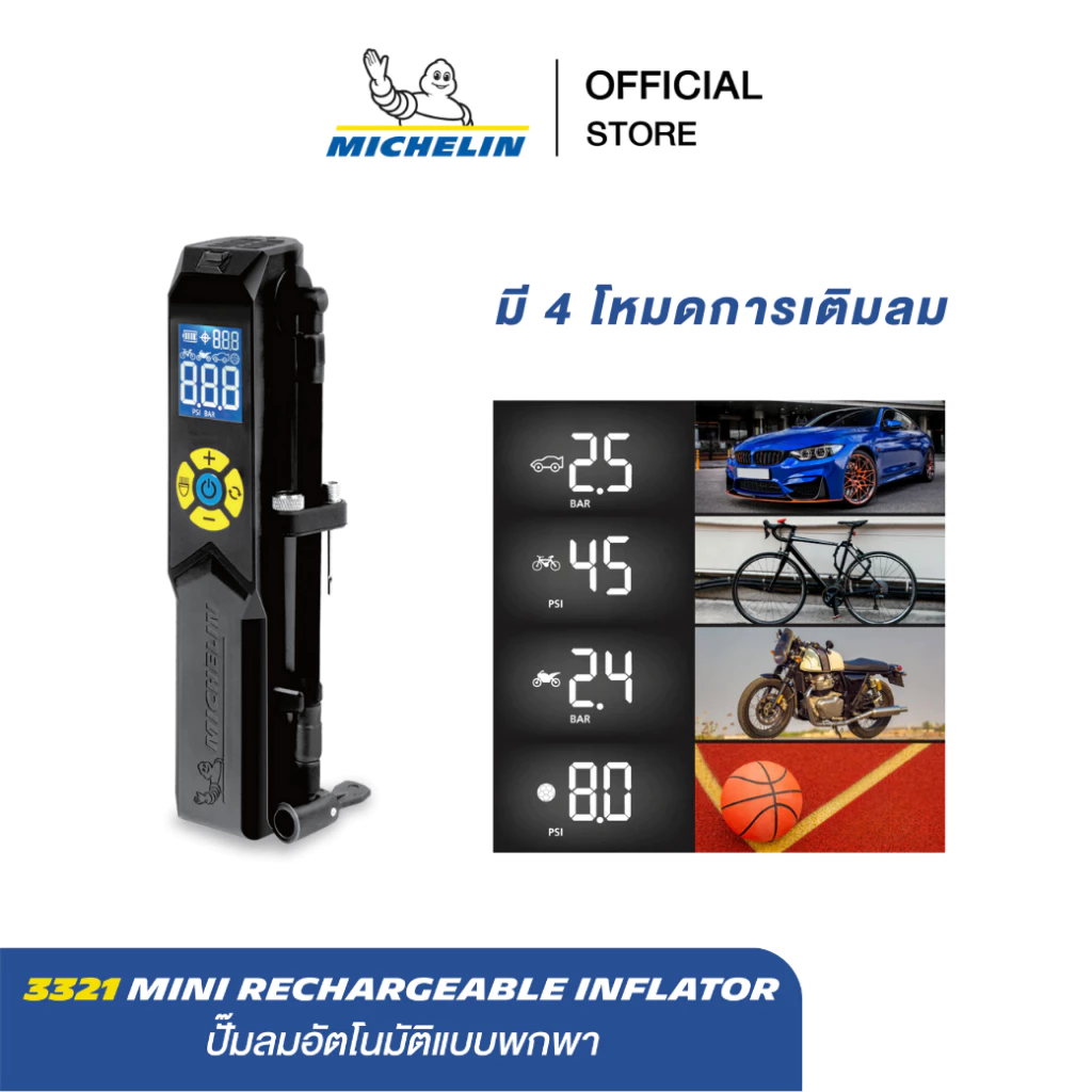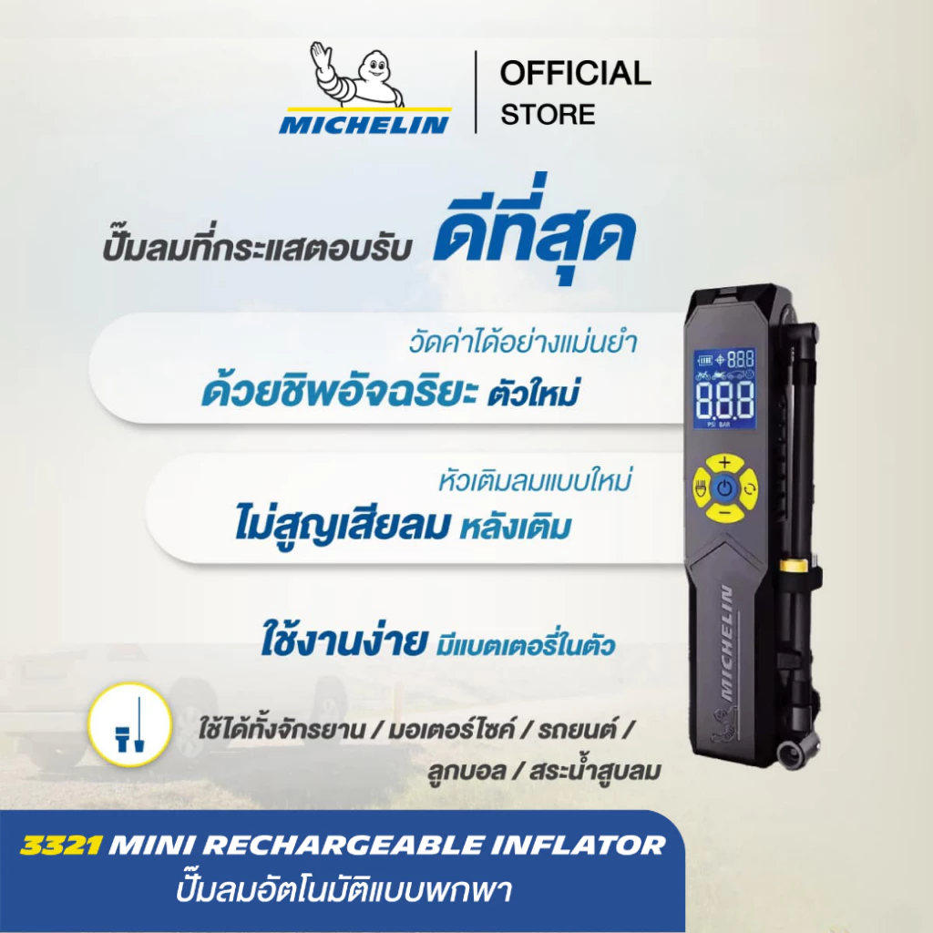 หนึ่งในตัวเลือกที่ได้รับความสนใจคือ MICHELIN Mini Rechargeable Inflator 3321 ซึ่งเป็นเครื่องเติมลมอัตโนมัติแบบพกพา