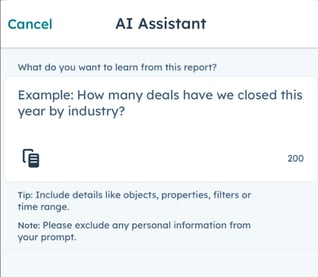 ใน HubSpot คุณสามารถให้ปัญญาประดิษฐ์ (AI) ช่วยสร้างรายงานแบบวัตถุเดียวที่ปรับแต่งได้เอง เพียงพิมพ์วลีหรือคำถามที่คุณอยากรู้ ระบบจะช่วยออกแบบเทมเพลตรายงาน พร้อมตัวกรองและการแสดงผลข้อมูลในรูปแบบกราฟให้เสร็จ