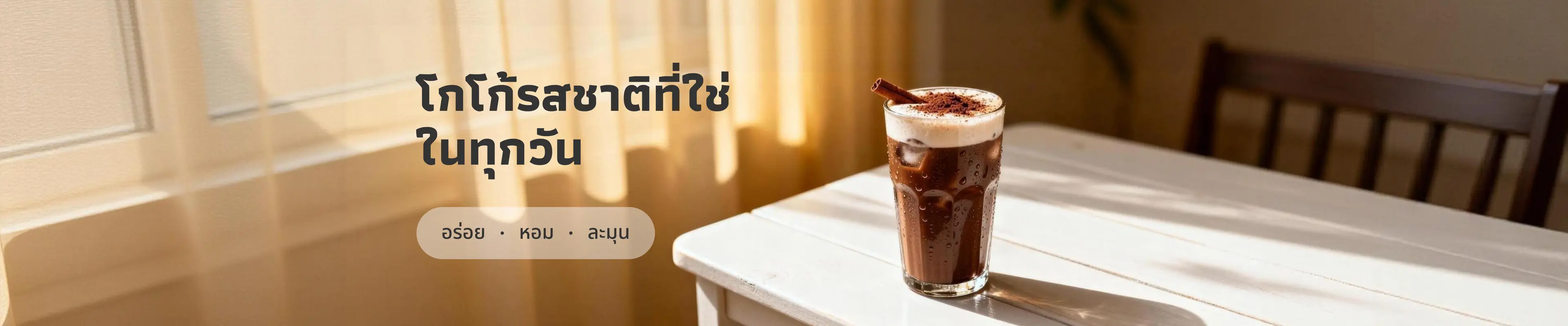 ไม่ว่าจะเป็นเช้าที่อยากเริ่มวันอย่างนุ่มนวล หรือค่ำวันที่ต้องการปล่อยใจให้ช้าลง โกโก้หนึ่งแก้วมักเข้ามาอยู่ในจังหวะเหล่านั้นเสมอ ด้วยรสขมละมุน กลิ่นอบอุ่น และความรู้สึกผ่อนคลายที่ไม่ต้องพยายามมาก