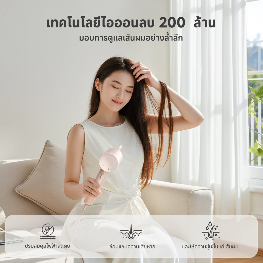 จำนวน 200 ล้านไอออนถือว่าอยู่ในระดับสูง ช่วยให้ผมดูเงางามและนุ่มขึ้นหลังเป่า