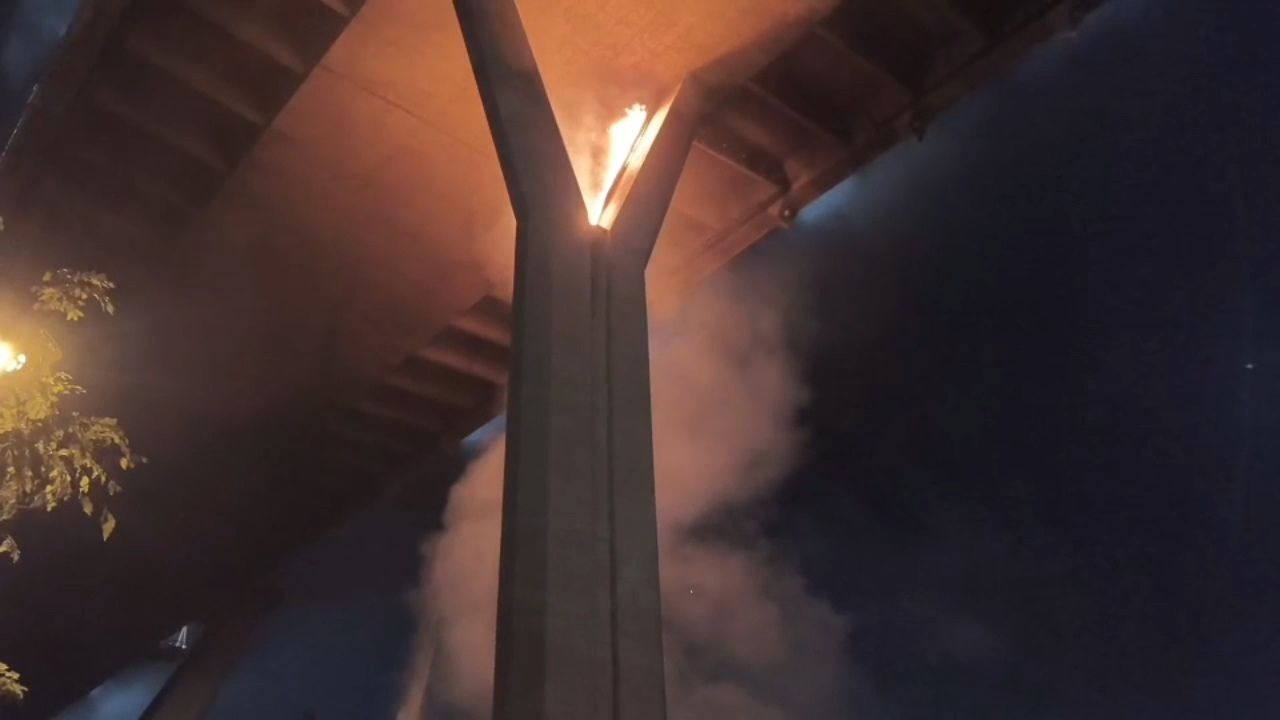 ไทยพีบีเอสรายงานว่า เหตุเกิดเมื่อเวลาประมาณ 19.00 น. โดยเพลิงลุกไหม้ ท่อระบายน้ำ (วัสดุ PPE สีดำ) ซึ่งทำหน้าที่ระบายน้ำทิ้งจากผิวการจราจรบนสะพานลงสู่พื้นด้านล่าง