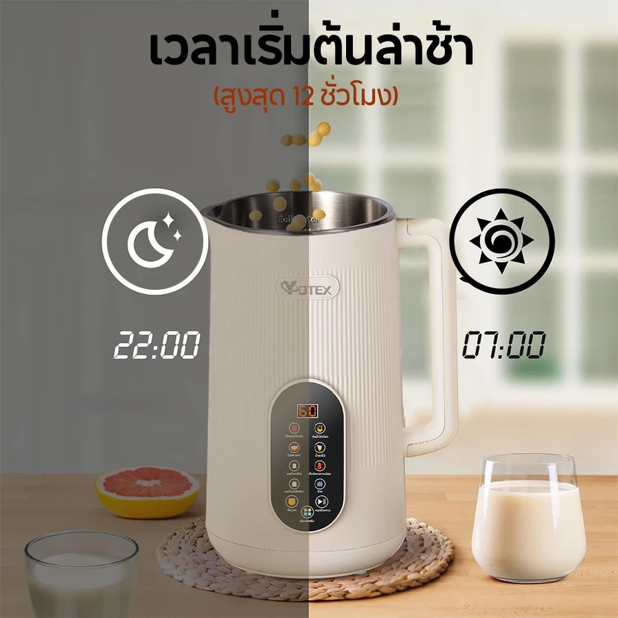 Yotex ออกแบบการทำงานให้เข้าใจง่าย ไม่ซับซ้อน แต่รองรับการใช้งานหลากหลาย ทั้งเครื่องทำนมถั่วเหลือง เครื่องปั่นน้ำธัญพืช และเครื่องทำอาหารเหลวในตัวเดียว