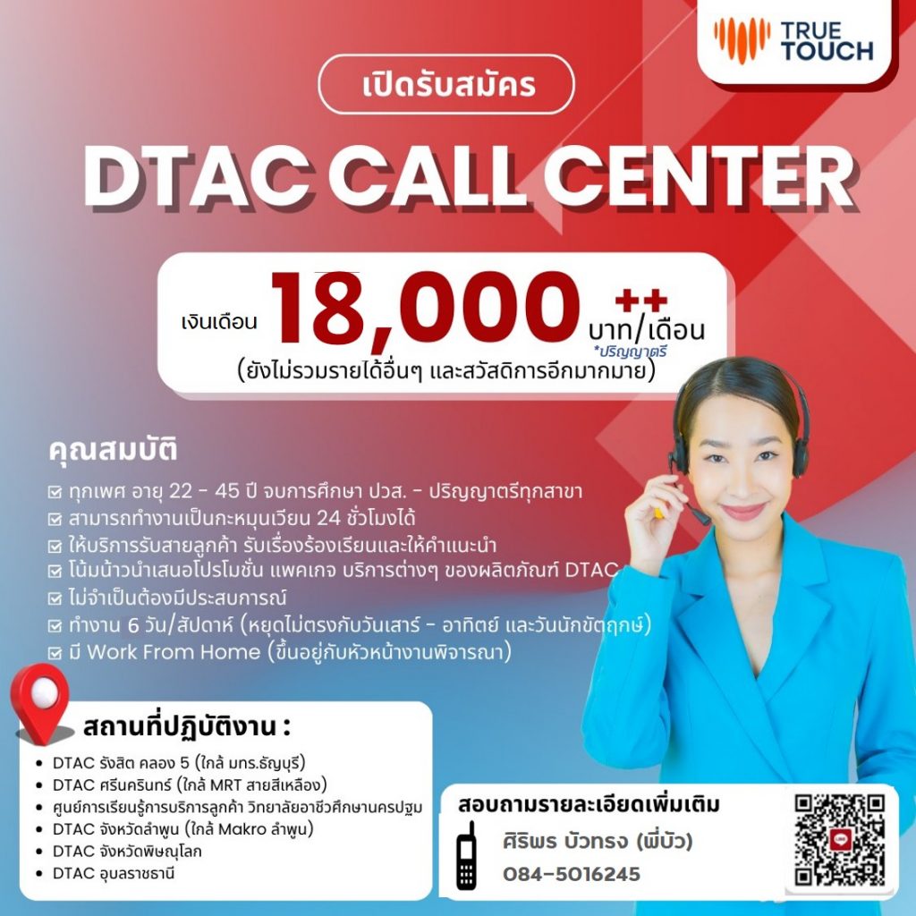 สายบริการที่รักเทคโนโลยีและชอบคุยกับลูกค้า มารวมกันตรงนี้ได้เลย เพราะมีงานสาย Call Center / Customer Service ของ True และ DTAC เปิดรับแบบจัดเต็ม ทั้งเงินเดือน โบนัส และโอกาสเติบโตในสายงานบริการดิจิทัล