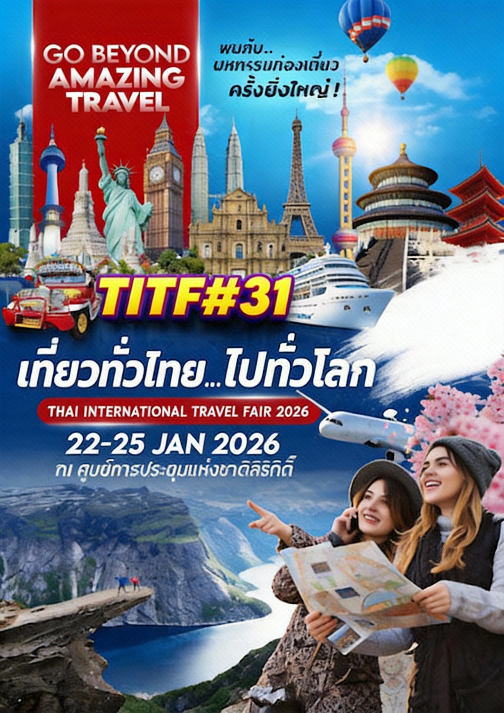 สมาคมไทยบริการท่องเที่ยว (TTAA) เตรียมเปิดม่านงานมหกรรมท่องเที่ยว “เที่ยวทั่วไทย ไปทั่วโลก” ครั้งที่ 31 (Thai International Travel Fair 2026: TITF#31) เอาใจคนชอบเที่ยวทั้งในและต่างประเทศแบบจัดเต็ม