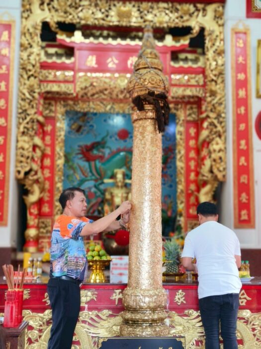 ภายในศาลมีทั้งเสาหลักเมือง และองค์เจ้าพ่อหลักเมืองในแบบเทพเจ้าจีน นักท่องเที่ยว นิยมมาขอพรเรื่องหน้าที่การงาน การเงิน และความมั่นคงในชีวิต