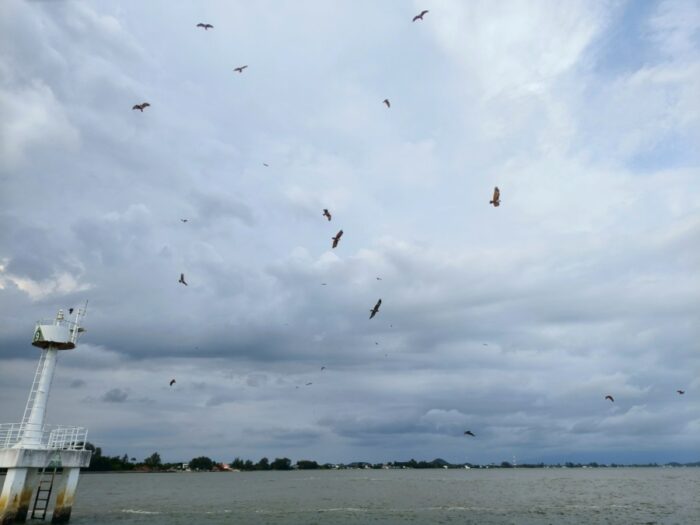 ที่ บ้านเรือโฮมสเตย์ นักท่องเที่ยวจะได้นั่งแพออกไปกลางน้ำ ชมฝูงเหยี่ยวแดงที่มาคอยต้อนรับกันแบบจัดเต็ม