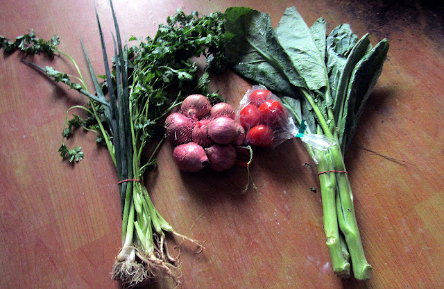 นอกจากไข่แล้ว ก็มีผักติดไม้ติดมือกลับบ้านมาด้วย