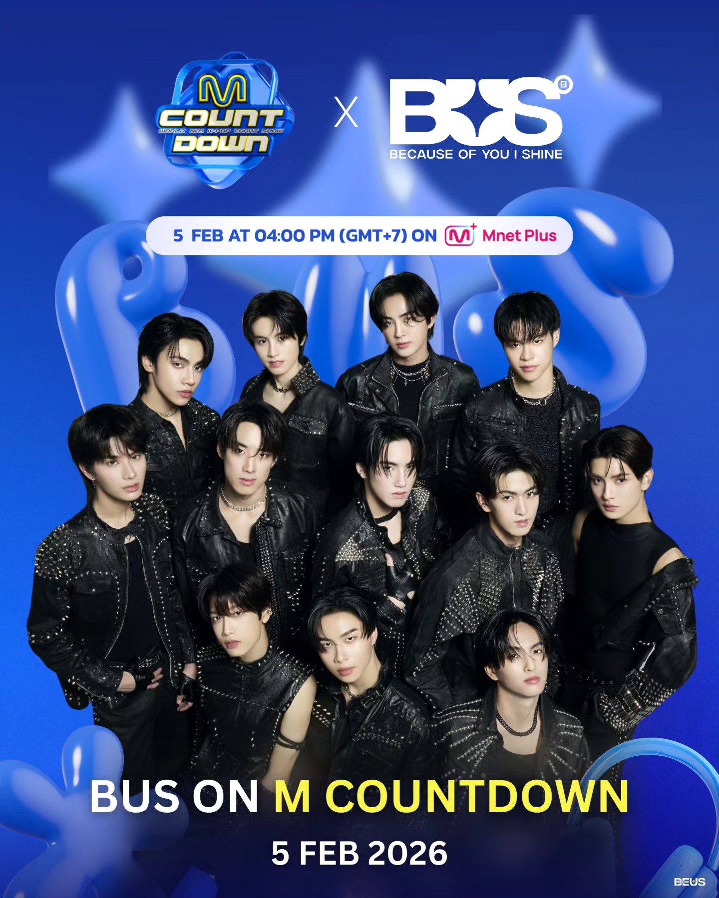นับเป็นอีกหนึ่งโมเมนต์ประวัติศาสตร์ของวงการทีป๊อปไทย เมื่อวงบอยกรุ๊ปสุดฮอต BUS because of you i shine ได้ขึ้นแสดงโชว์เพลงใหม่ So Blue เป็นครั้งแรกบนเวทีรายการเพลงระดับตำนานของวงการเคป๊อปอย่าง M COUNTDOWN ที่ประเทศเกาหลีใต้ พร้อมสร้างปรากฏการณ์สำคัญด้วยการเป็นวงทีป๊อปวงแรกที่ได้รับเชิญให้ขึ้นโชว์ในรายการนี้อย่างเป็นทางการ