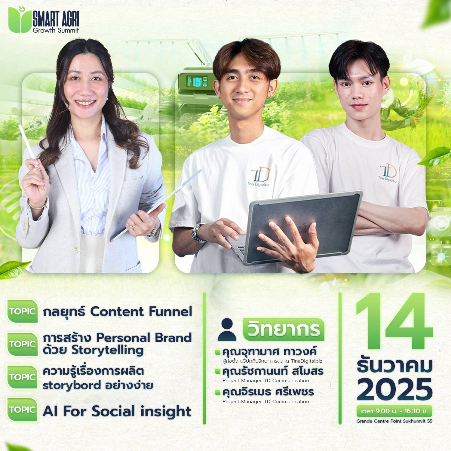 ใครที่จริงจังกับการทำเกษตรให้เป็น “ธุรกิจที่เติบโตได้จริง” และอยากเรียนรู้การใช้มาตรฐาน เทคโนโลยี AI และการตลาดมาช่วยขยับธุรกิจ งานนี้คือจุดเริ่มต้นที่ไม่ควรมองข้าม