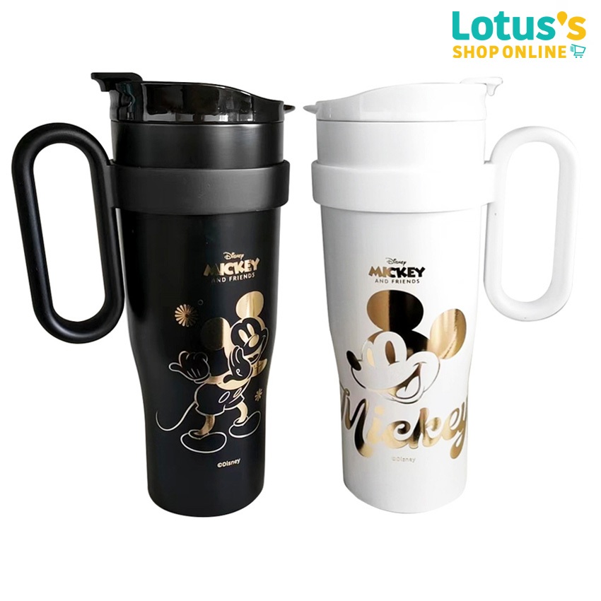 แก้วเก็บอุณหภูมิ Mickey รุ่นนี้มาในไซซ์ใหญ่ 40 OZ. พร้อมหูจับ ถือถนัดมือ ดีไซน์สีดำเท่ ๆ ตัดกับลายมิกกี้