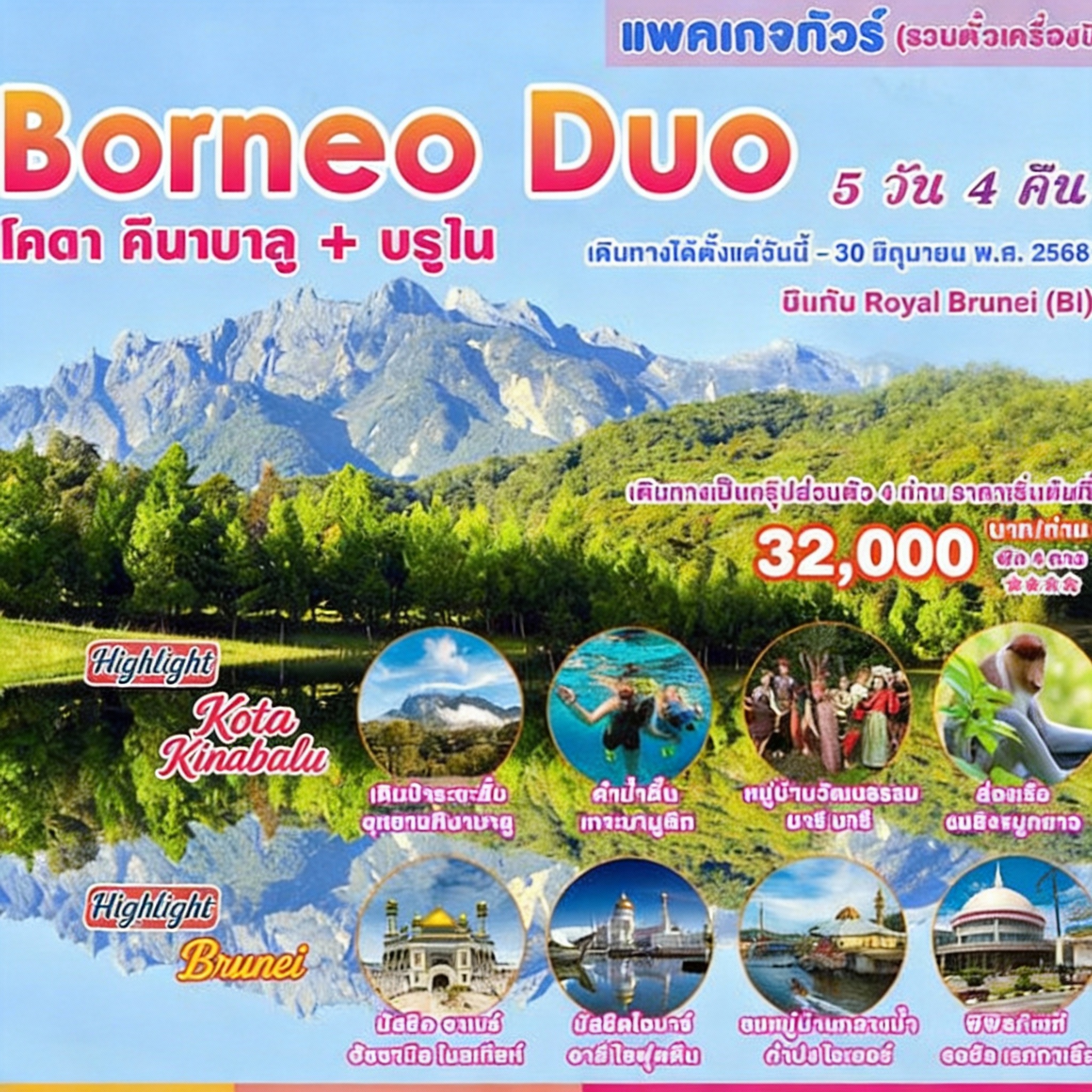 อยากเปลี่ยนบรรยากาศ ไปสัมผัสเกาะบอร์เนียวในมุมที่ไม่ซ้ำใครไหม? ทริปนี้พาไปเก็บครบทั้ง โคตาคินาบาลู (มาเลเซีย) และ บรูไน ภายใน 5 วัน 4 คืน จัดเต็มทั้งภูเขา ทะเล วัฒนธรรม และเมืองสวยสไตล์มุสลิม