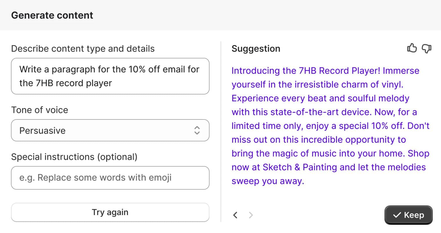เน้นเขียนคำอธิบายสินค้า + อีเมล → Shopify Magic