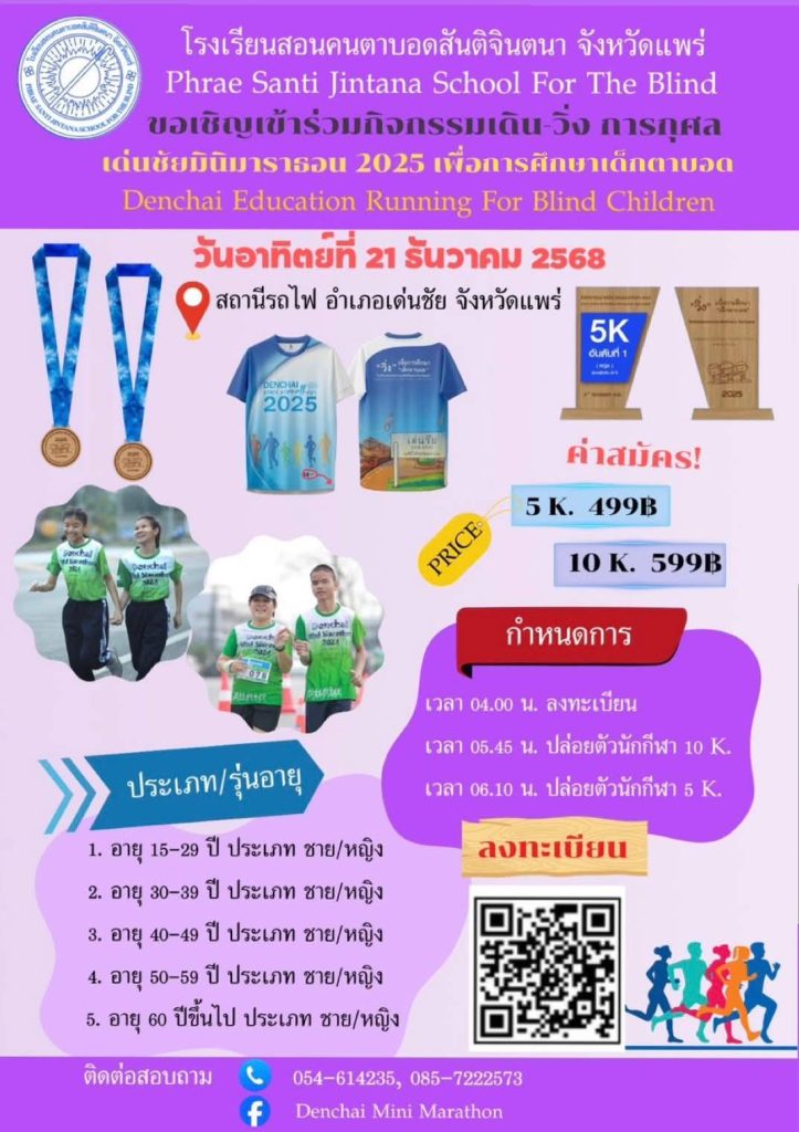 เด่นชัยมินิมาราธอน 2025 ไม่ใช่แค่งานวิ่งทั่วไป แต่คือเวทีที่รวมพลังของคนในชุมชน หน่วยงานท้องถิ่น และนักวิ่งจากทุกที่ มาช่วยกันสร้างโอกาสให้เด็กตาบอดได้มีสื่อการเรียนรู้ และอุปกรณ์ที่เหมาะสมกับเขามากขึ้น