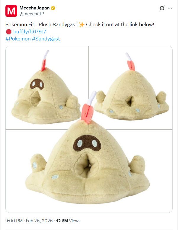 ล่าสุด ตุ๊กตา Sandygast จากซีรีส์ Pokemon Fit กลายเป็นไวรัลบน X (Twitter เดิม) หลังจากเว็บไซต์จำหน่ายของสะสมชื่อดังอย่าง Meccha Japan โพสต์ขาย จนยอดวิวพุ่งไปถึง 12.6 ล้านวิว และที่สำคัญ… ตอนนี้ของหมดเรียบร้อย