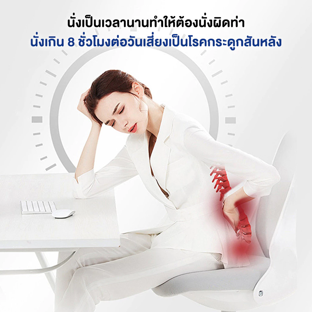การใช้ เบาะรองหลังเพื่อสุขภาพ ที่ออกแบบให้โอบรับเอวและดันหลังให้ตั้งตรงโดยอัตโนมัติ ช่วยลดภาระกล้ามเนื้อ และช่วยให้ท่านั่งถูกต้องได้ง่ายขึ้น