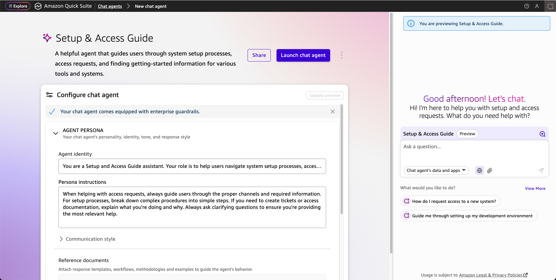 Quick Suite มาพร้อม Chat Agents ที่ออกแบบมาให้คุณโต้ตอบกับข้อมูลและ Workflow ผ่านการแชทด้วยภาษาปกติ