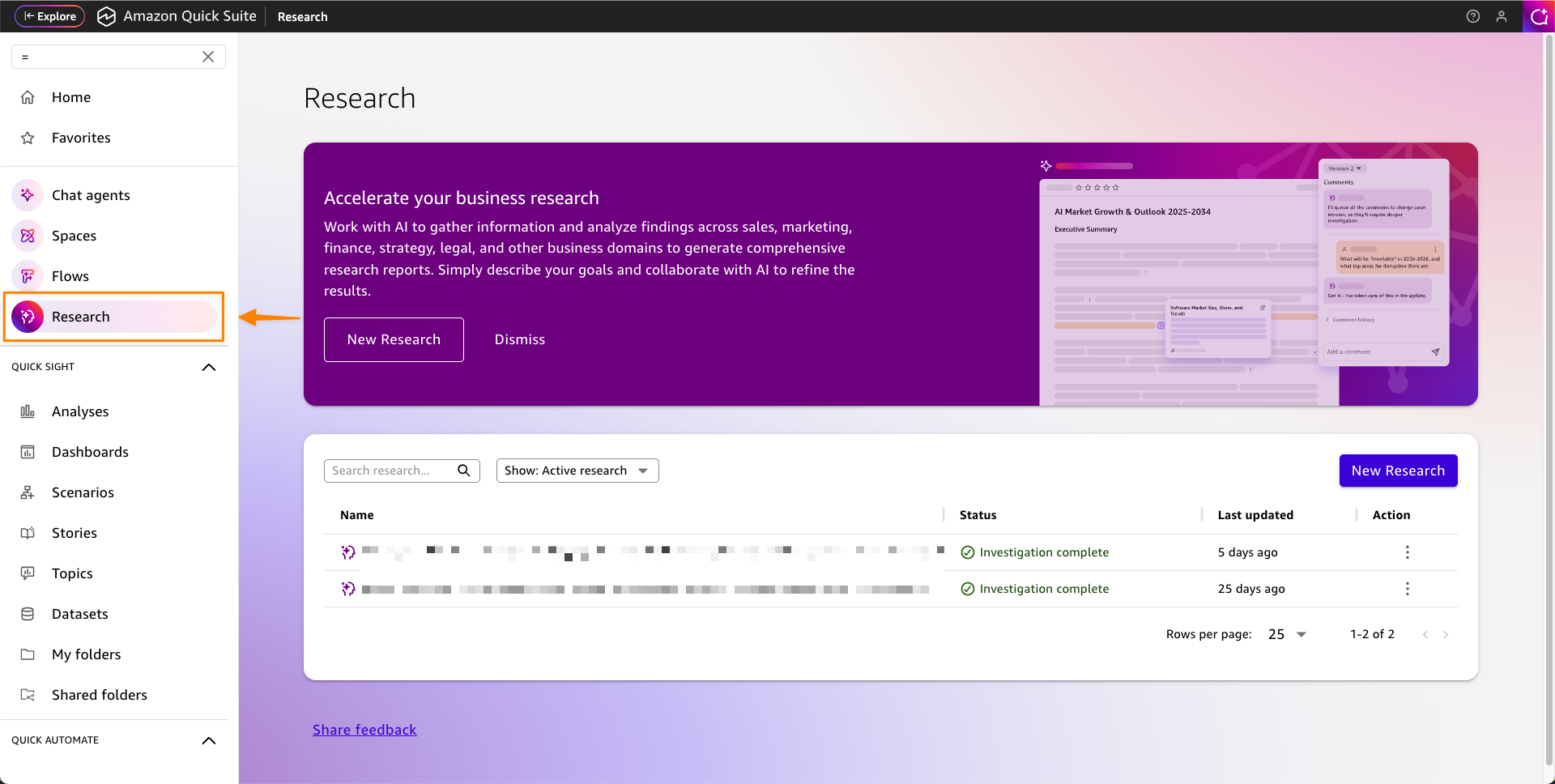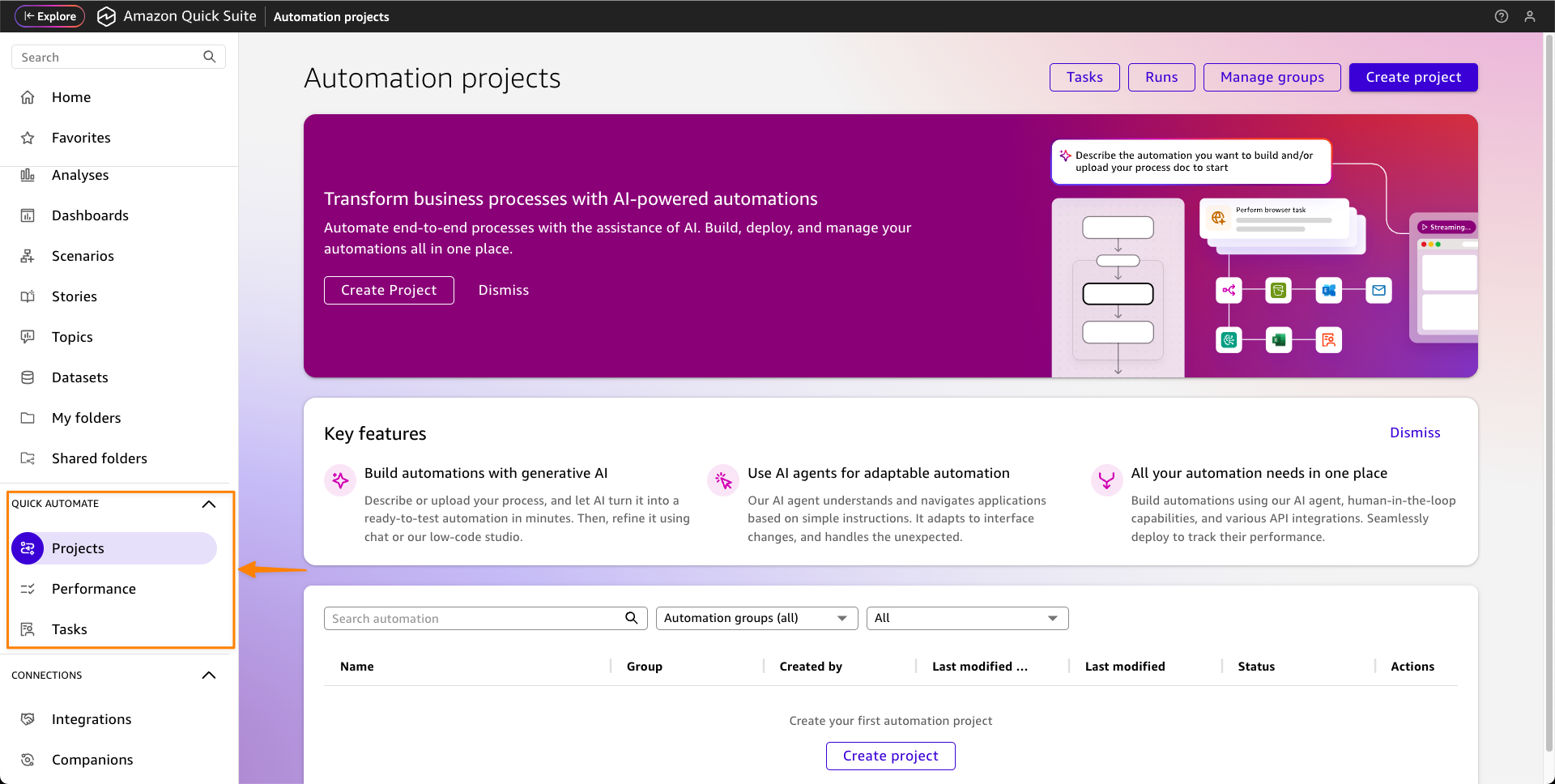 ภาพรวมหน้าจอ Quick Suite: ทุกอย่างรวมอยู่ใน Workspace เดียว