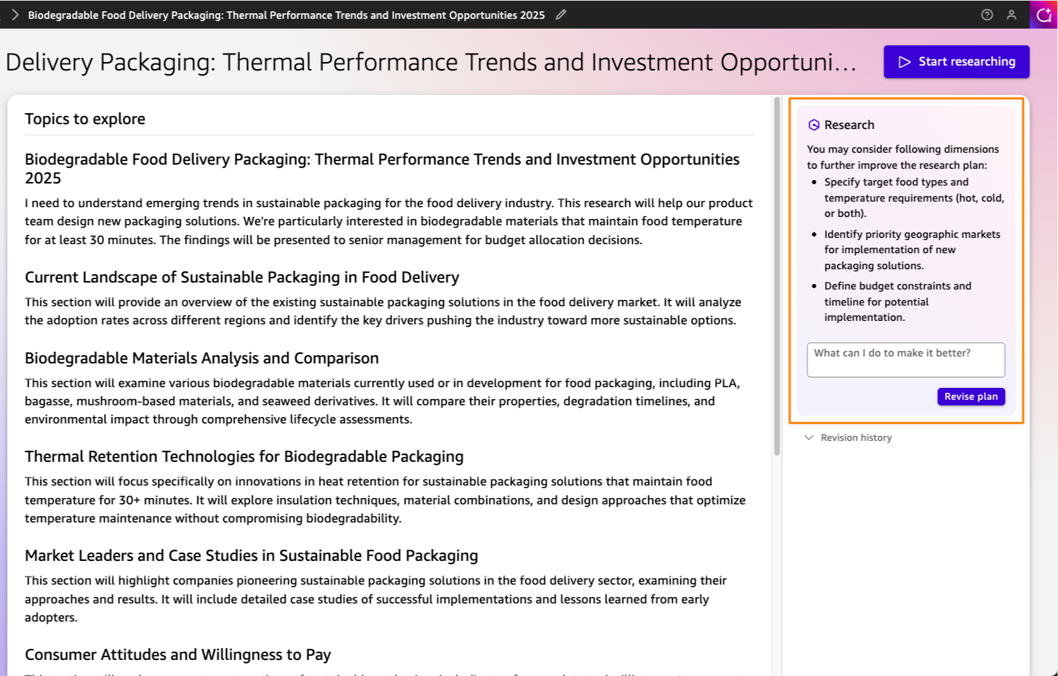 คุณสามารถปรับแผนการวิจัยผ่าน Prompt ได้เอง จนพอใจก่อนให้มันเริ่มทำงานจริง