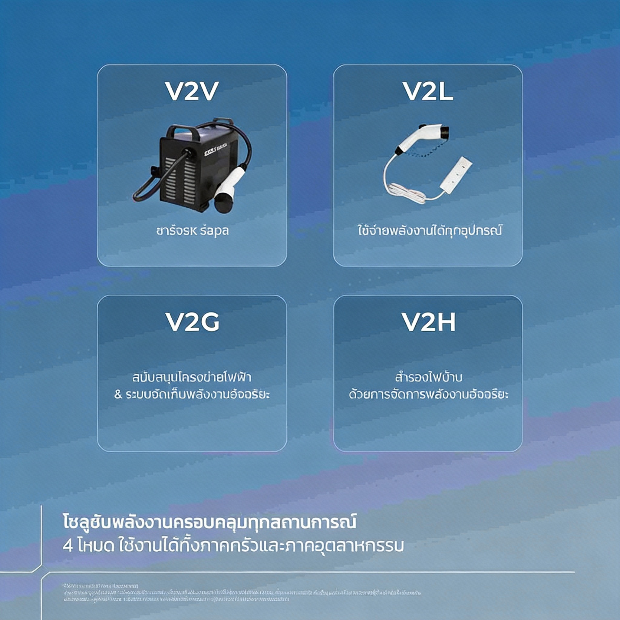 V2G (Vehicle to Grid) – จ่ายไฟกลับเข้าสู่ระบบกริดไฟฟ้า (ในบริบทที่รองรับ)