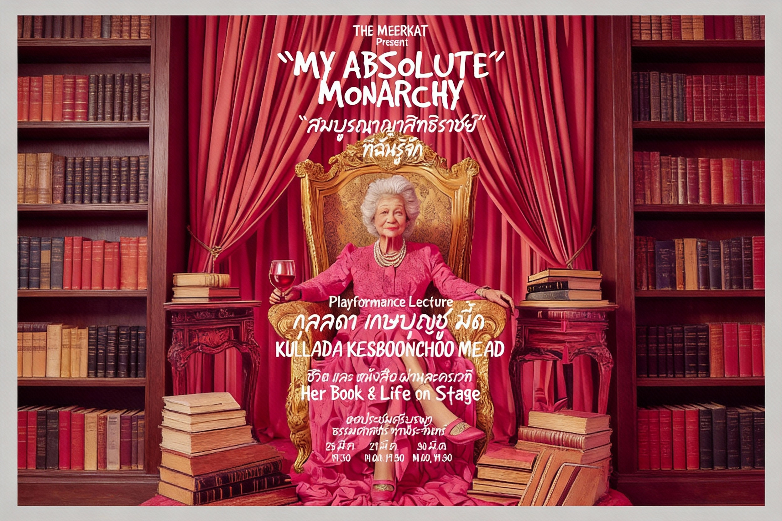 งานวิจัยของ รศ.ดร.กุลลดา เกษบุญชู มี้ด ที่เริ่มจากวิทยานิพนธ์ปริญญาเอกที่ SOAS ลอนดอน ถูกพัฒนาเป็นหนังสืออังกฤษ ตีพิมพ์กับสำนักพิมพ์วิชาการระดับโลก แล้วถูกแปล ขยาย เติมภาคผนวกและนามานุกรม กลายเป็นฉบับไทยอย่าง “ระบอบสมบูรณาญาสิทธิราชย์ : วิวัฒนาการรัฐไทย” ก่อนจะถูกฉีกออกมาเป็นเวอร์ชัน “ย่อยง่าย” ผ่านละครเวทีแนว Playformance Lecture เรื่อง “สมบูรณาญาสิทธิราชย์” ที่ฉันรู้จัก – MY ABSOLUTE MONARCHY โดยทีม THE MEERKAT