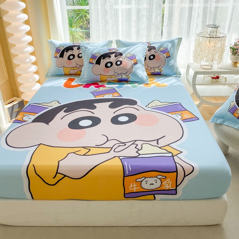 ปิดท้ายด้วยไอเทมที่เปลี่ยนห้องนอนให้สดใสทันที ผ้าปูที่นอนชินจัง ขนาด 3.5 ฟุต, 5 ฟุต และ 6 ฟุต