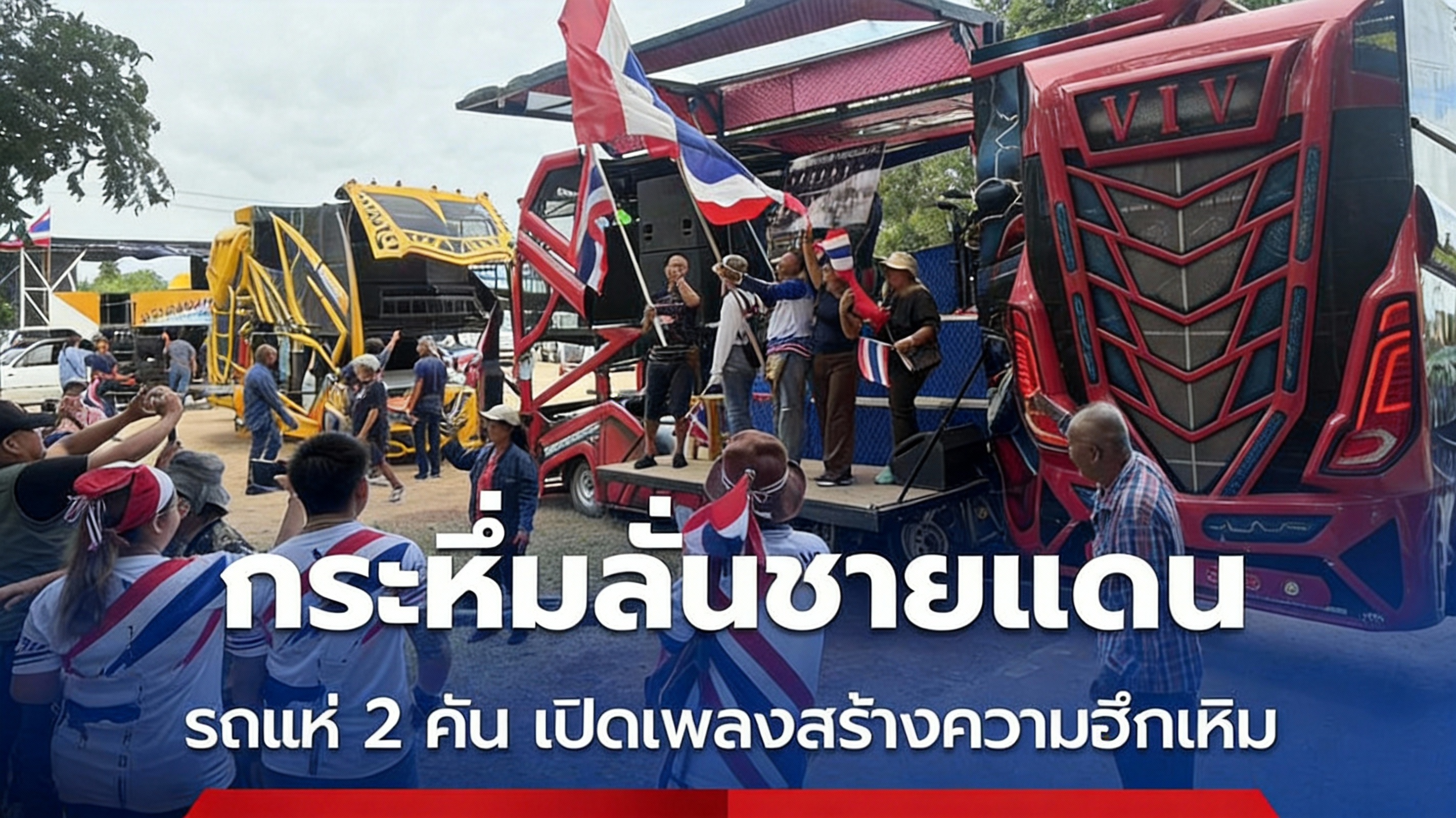 ครั้งนี้ไม่มาเล่น ๆ เพราะขน รถแห่ขนาดใหญ่ 2 คัน มาด้วย เปิดเพลงปลุกใจเสียงดังสนั่นไปทั่วแนวชายแดน บรรยากาศเต็มไปด้วยพลังและความฮึกเหิม