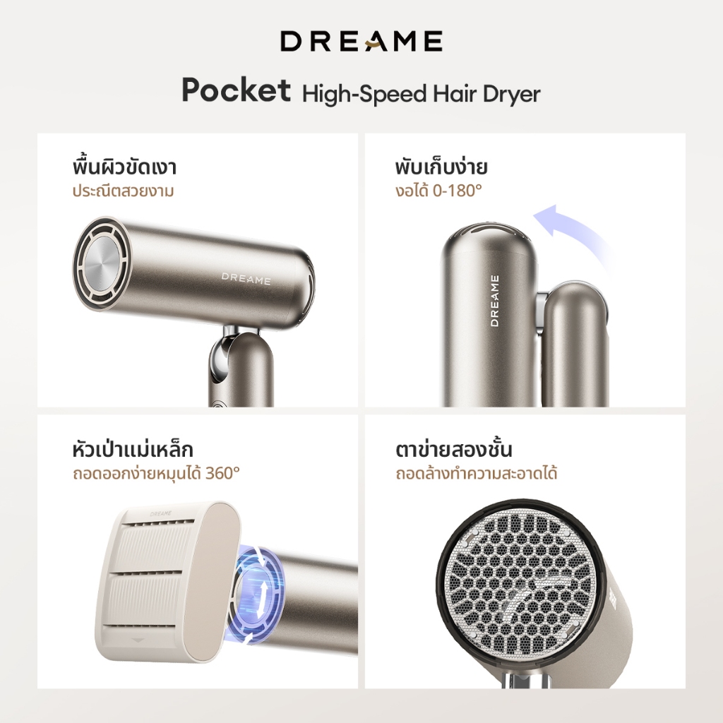 คุณสมบัติเด่นของ Dreame Pocket Uni / Pocket High-Speed Hair Dryer