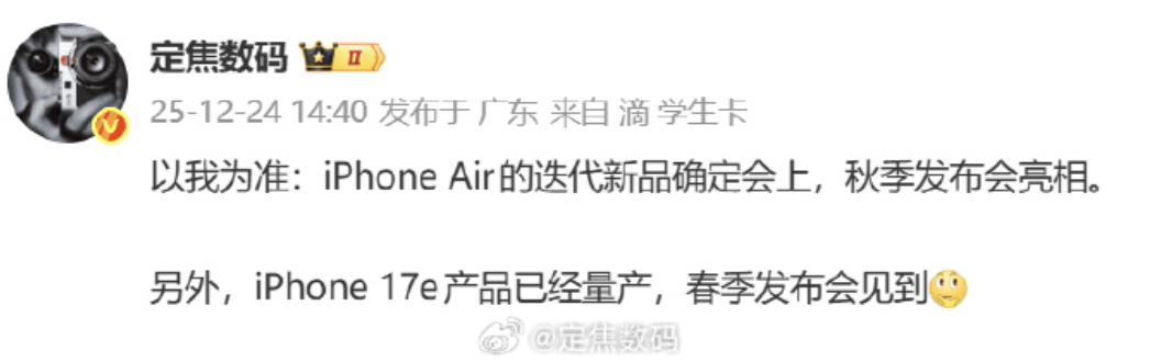 แหล่งข่าวที่ออกมายืนยันข้อมูลล่าสุดคือ Fixed Focus Digital นักปล่อยข่าวบน Weibo ที่เคยมีผลงานแม่นยำมาก่อน โดยเฉพาะการเปิดเผยชื่อ iPhone 16e ล่วงหน้าก่อนเปิดตัวจริง