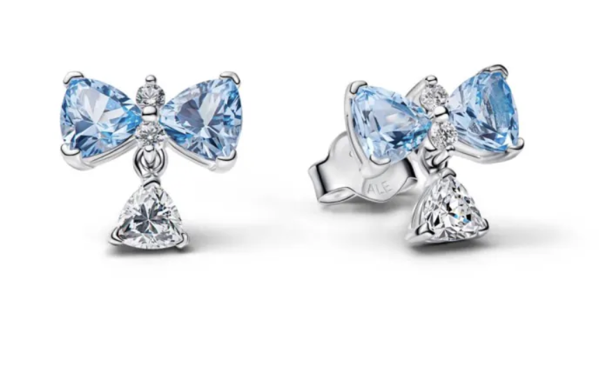 หัวใจสำคัญของคอลเลกชันนี้คือ Pandora Bridgerton Blue Bow Stud Earrings ตุ้มหูทรง Stud ที่ถ่ายทอดเสน่ห์แบบผู้ดีอังกฤษผ่านดีไซน์โบว์อันประณีต