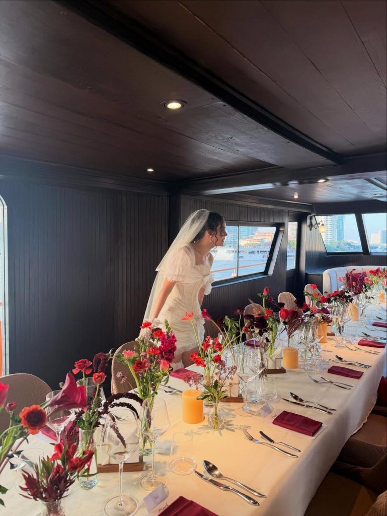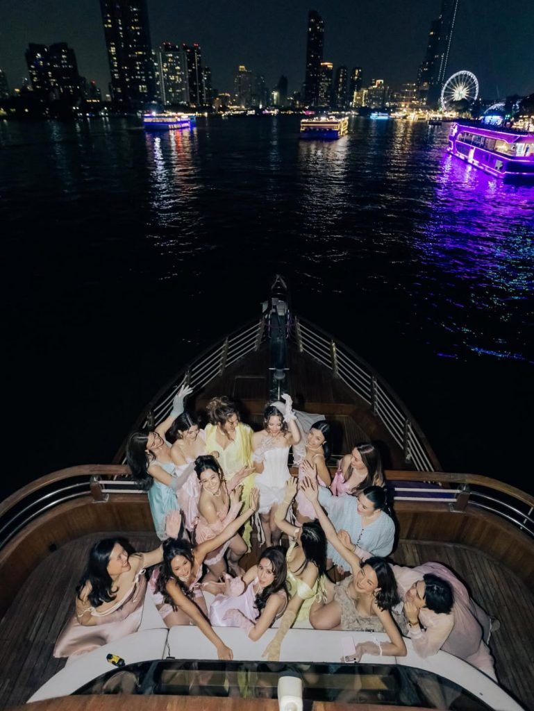 ต่อจากนั้นโหมดโรแมนติกก็ถูกดันขึ้นไปอีกขั้น ด้วยการลงเรือครูซล่องชมวิวแม่น้ำเจ้าพระยาในช่วงพระอาทิตย์ตก ได้ทั้งฟีลเที่ยว ทั้งฟีลฉลอง ก่อนเข้าสู่โหมดปาร์ตี้ยามค่ำคืนแบบจัดเต็ม