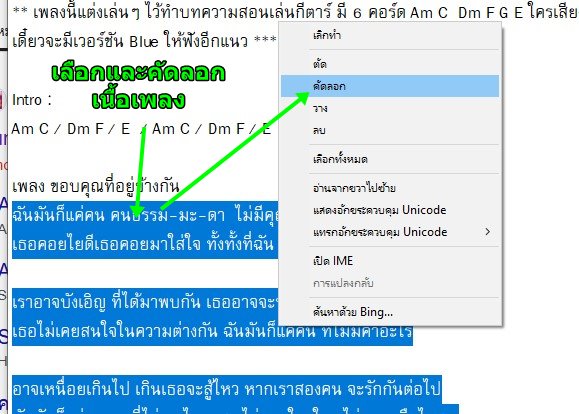 จะพิมพ์เนื้อเพลงด้วยอะไรก็ได้ ตามถนัด เช่น