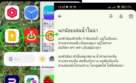ใช้มือถือพิมพ์ในแอปจดโน้ต เช่น Google Keep หรือแอปโน้ตพื้นฐานในเครื่อง