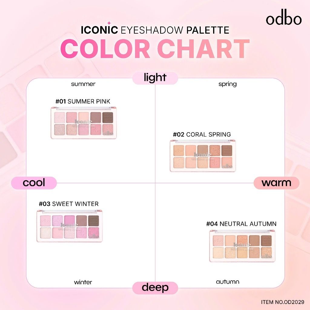 โดยเฉพาะในกลุ่มอายแชโดว์และบลัชออน สีของ odbo ถูกออกแบบมาให้เข้ากับโทนผิวสาวไทยโดยเฉพาะ ไม่ซีด ไม่ดรอป และไม่ดูเทาเมื่อทาลงบนผิวจริง ทำให้แต่งหน้าแล้วหน้าดูสด มีมิติ และไม่หลอกตา 👁️✨