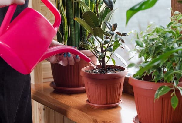 สำหรับไม้กระถางในบ้าน แนะนำให้ใช้น้ำที่ ตั้งทิ้งไว้ในห้องเดียวกัน จนอุณหภูมิใกล้เคียงกันก่อนนำไปรด