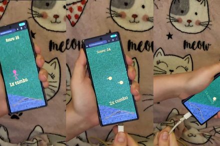 จุดเด่นของเกมนี้คือเอาพฤติกรรม “เสียบ–ดึงสายชาร์จ” ที่เราทำทุกวัน มาดัดแปลงให้กลายเป็นการควบคุมคันธนูในเกม