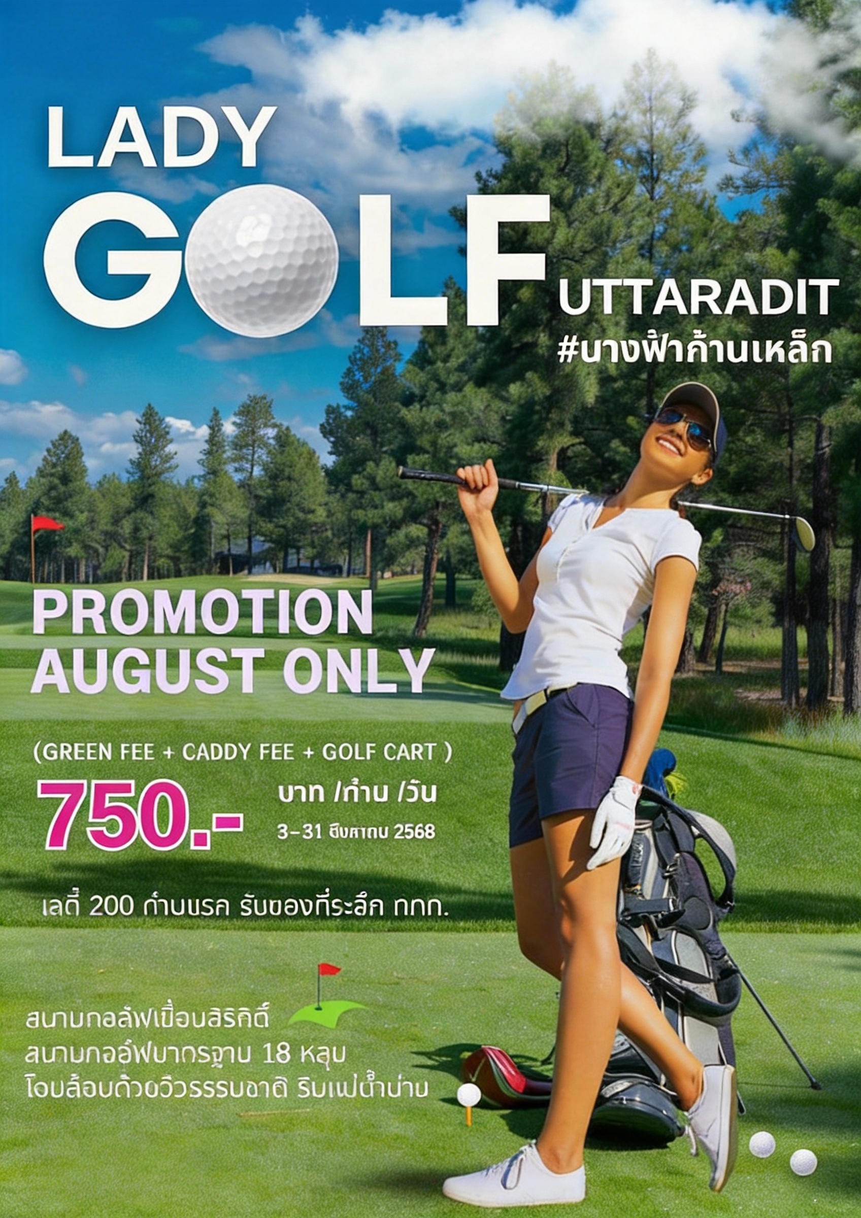 August Lady Golf #นางฟ้าก้านเหล็ก ปี 1 เรียกได้ว่าเป็นแคมเปญที่รวมความเป็น เลดี้สายสปอร์ต และสายเที่ยวครอบครัวเข้าไว้ด้วยกันแบบลงตัวสุด ๆ ที่จังหวัดอุตรดิตถ์