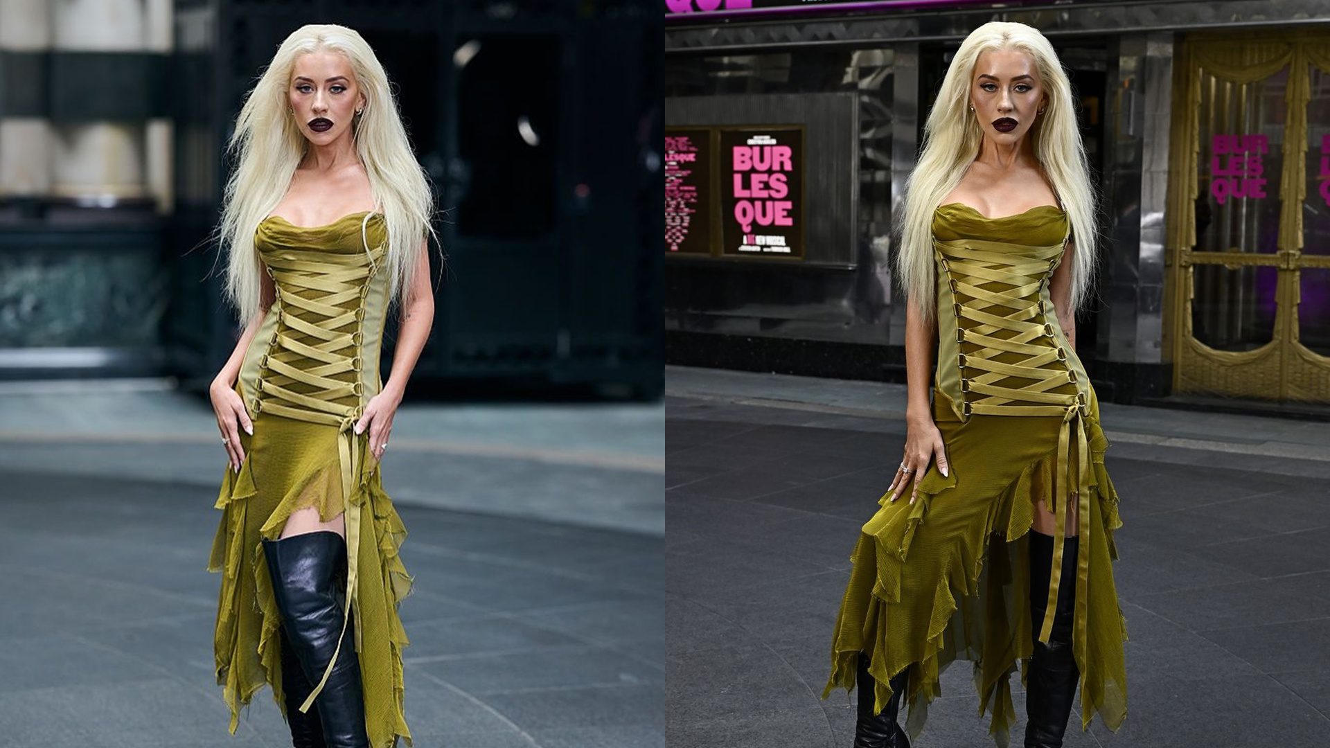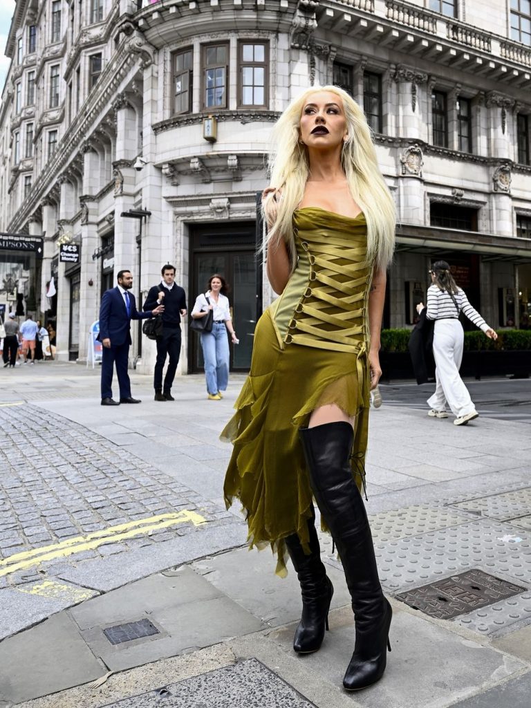 ค่ำคืนเปิดม่านการแสดง Burlesque: The Musical ที่โรงละคร Savoy ใจกลางลอนดอน ยิ่งทวีความพิเศษขึ้นไปอีกขั้น เมื่อ Christina Aguilera ปรากฏตัวด้วยลุควินเทจสุดไอคอนิกจาก Versace ที่ทั้งสง่างามและเต็มไปด้วยความทรงจำในเส้นทางแฟชั่นของเธอเอง