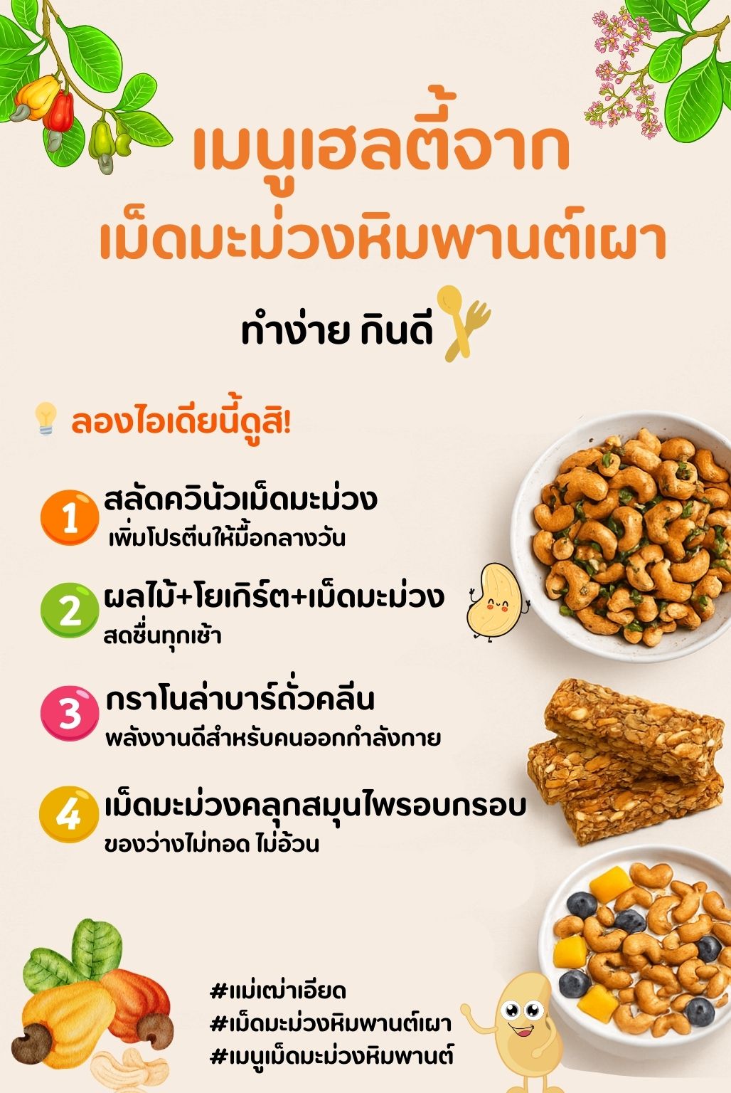 เม็ดมะม่วงหิมพานต์เผาไม่ใช่แค่ของกินเล่นธรรมดา แต่เป็น วัตถุดิบอเนกประสงค์ ที่เอาไปต่อยอดได้ทั้งเมนูคาว หวาน ของว่าง ไปจนถึงซอสเฮลตี้แบบครีมมี่ ช่วยเพิ่มทั้งรสชาติและคุณค่าทางโภชนาการให้จานอาหารของคุณ